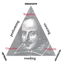 to triangulation to Histories to comedies to Tragedies to graduate level to advanced level to introductory level to performing approach to viewing approach to reading approach