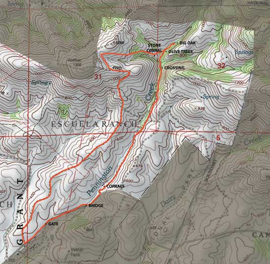 hike map of Serrano Ranch |