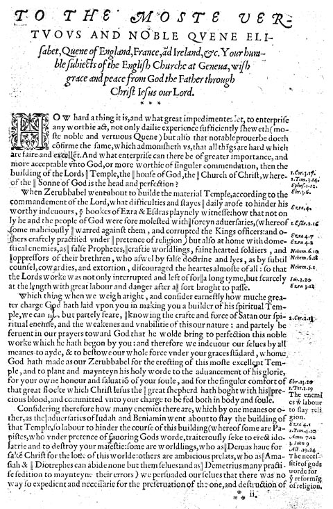 1560 Geneva Bible's Prefatory letter to Queen Elizabeth